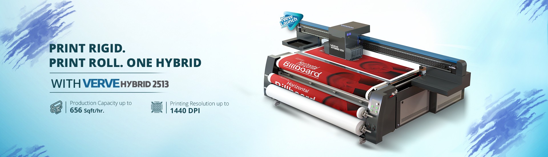 VERVE HYBRID 2513 is a next-generation hybrid UV printer designed for versatility and precision. With a 2500 × 1300 mm flatbed and 2500 mm roll-to-roll capability, it seamlessly handles both rigid and flexible media on a single platform.